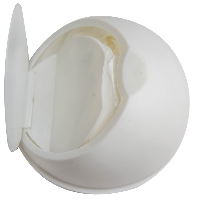 The refill cartridge consists of the cap, modesty flap and a liner that contains biodegradable, antimicrobial and deodorising additives.