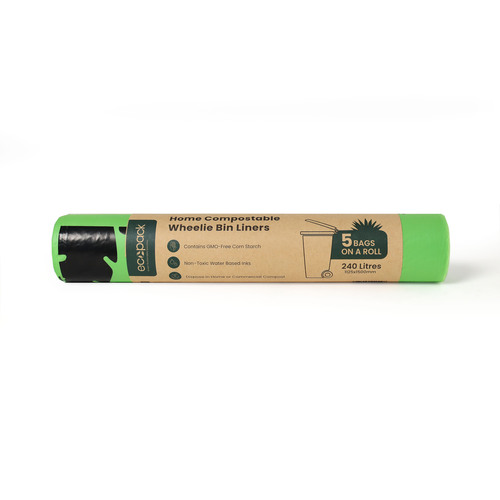 Ecopack 240L compostable bin liners are suited for large wheelie bins and commercial use bins. It is made from natural corn starch and offers an alternative to traditional plastic bags.