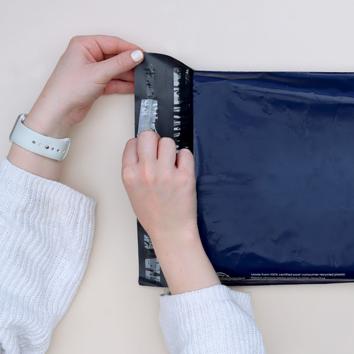 Made from 100% post-consumer recycled plastic, these courier bags are a smart alternative to traditional plastic mailing satchels. They're double-layered to make them nice and durable. And they feature a second line of seal so you can reuse them again.